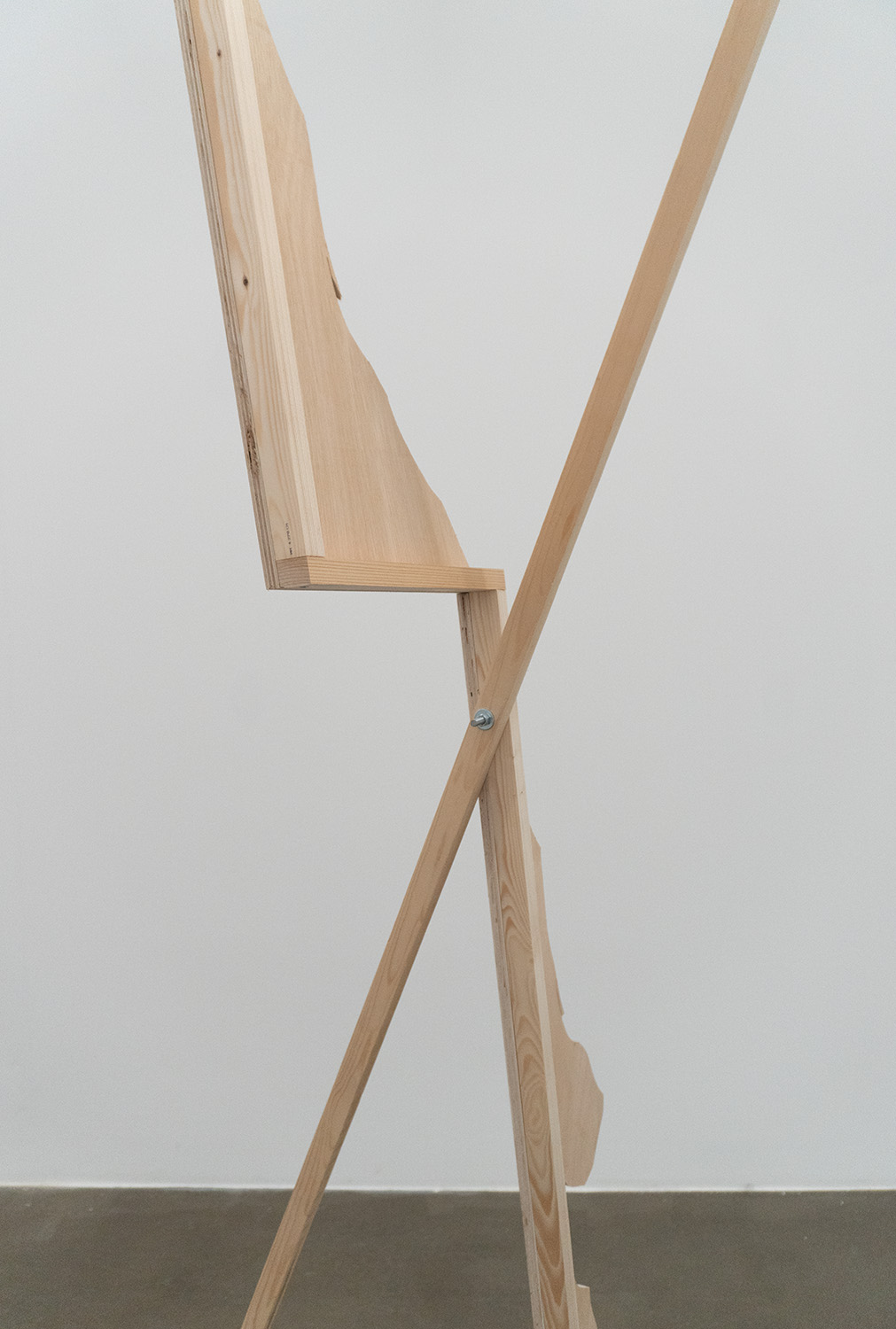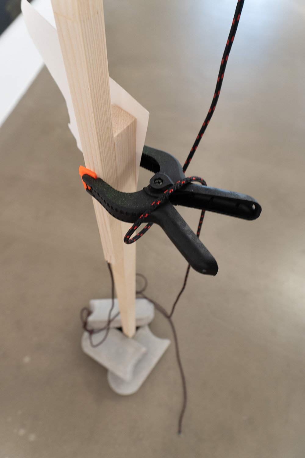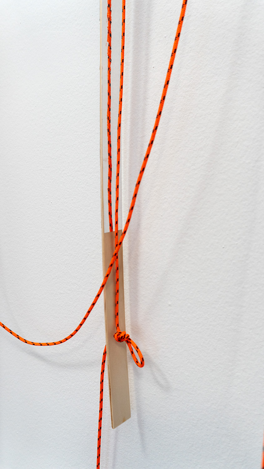 Aluminium foil tape and pencil on gallery wall, wooden slat