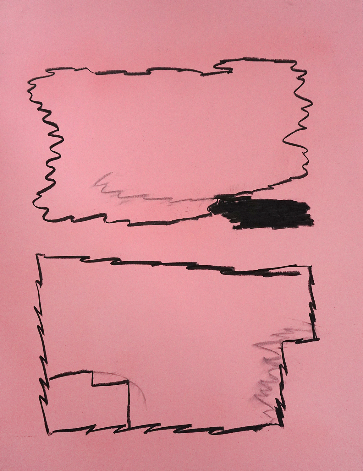 Series of 9 drawings, charcoal on colored and white paper,